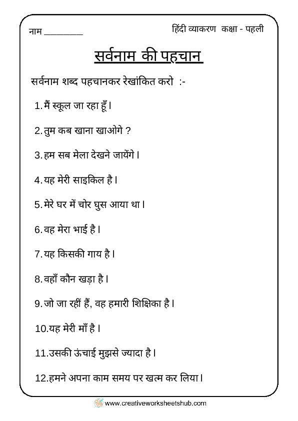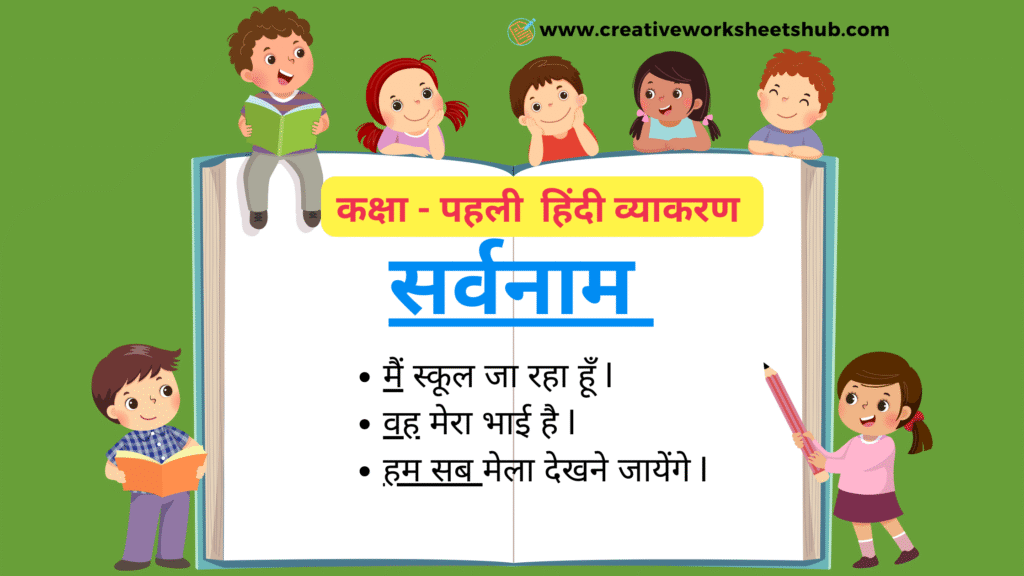 कक्षा 1 के छात्रों के लिए, सर्वनाम को इस प्रकार से सरल शब्दों में समझ सकते है -: