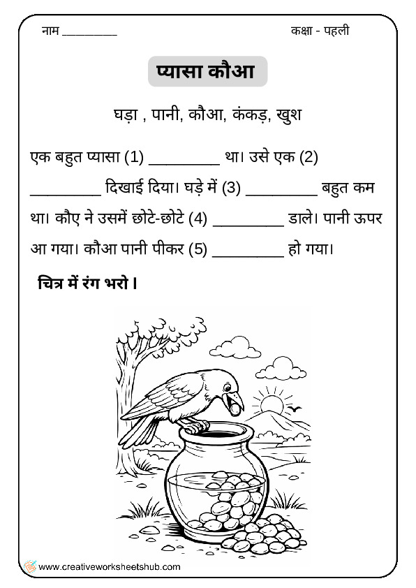- कहानी सुनाना (Storytelling): वर्कशीट देने से पहले बच्चों को वह कहानी हाव-भाव के साथ सुनाएँ। इससे जब वे रिक्त स्थान भरेंगे, तो उन्हें कहानी याद आएगी और वे आत्मविश्वास के साथ उत्तर लिख पाएंगे।
