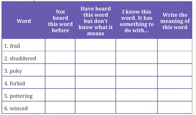 II. Fill in the table given below. You may check youranswers with the help of a dictionary.